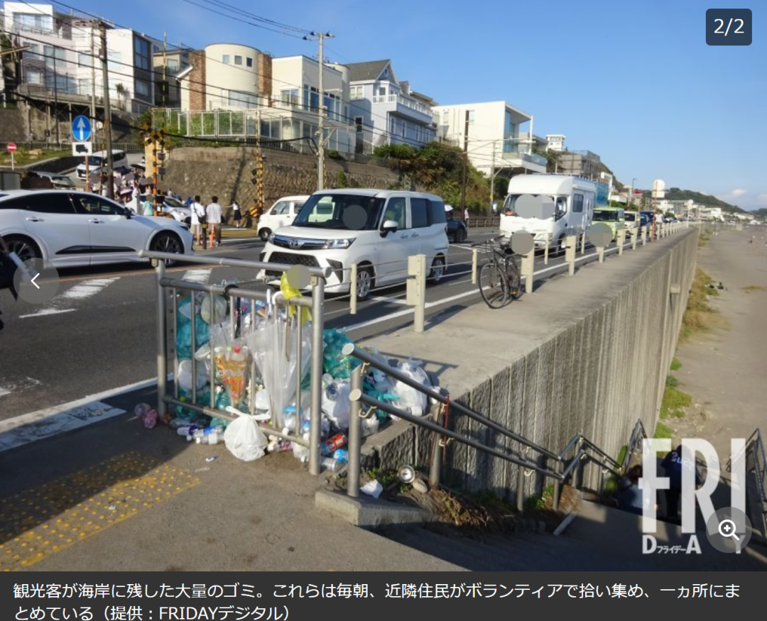 伴随着越来越多游客涌入镰仓,出现了游客在旁边的医院“盗电”“盗厕”、把垃圾堆积在路边的现象,整片区域甚至有失控的痕迹。