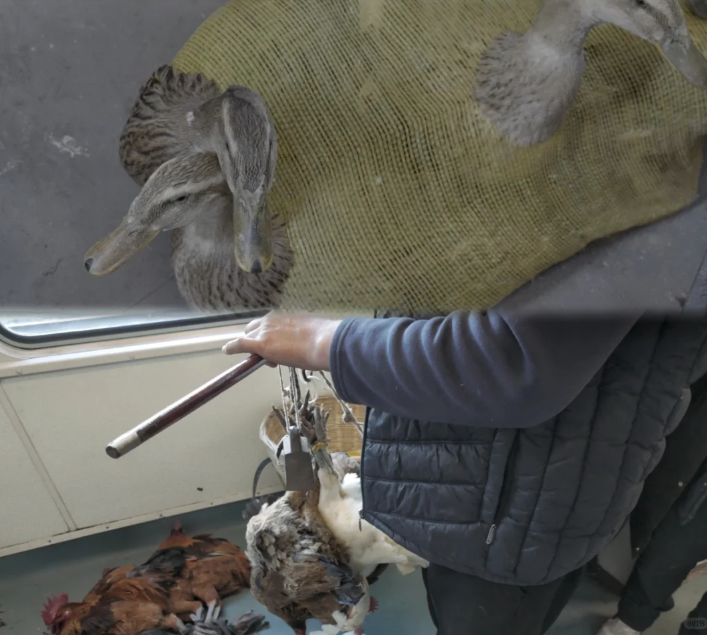 “车上人来人往的,氛围很热闹,甚至想买只鸡带回家炖汤”,其中一名大学生说。